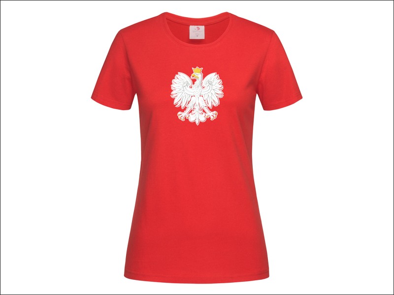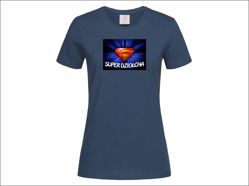 Nadruk wykonany jest na wysokiej jakości, bawełnianej damskiej koszulce z krótkim rękawem.
