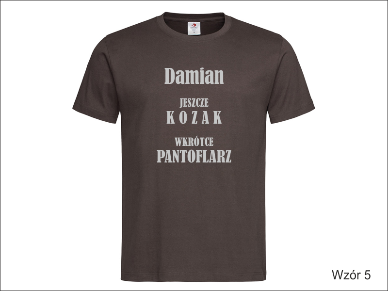 Można wykonać koszulkę wg jednego z wzorów lub określić własną kolorystykę nadruku.