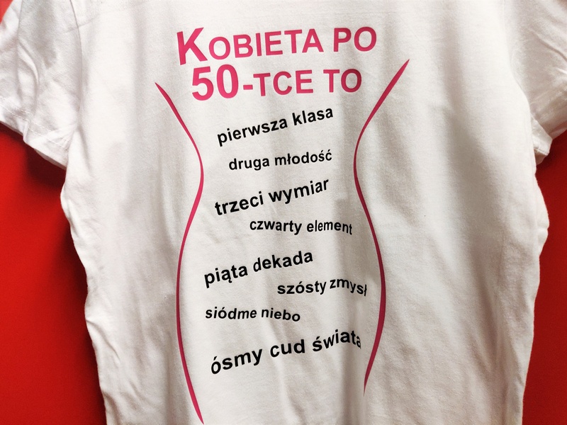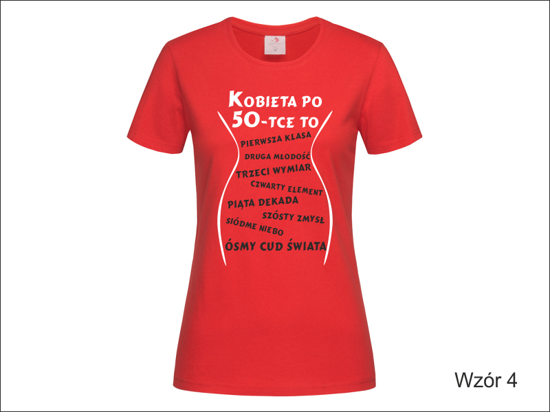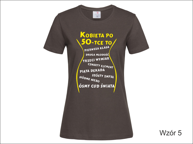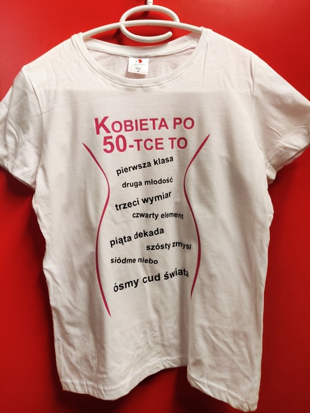 Urodzinowa koszulka damska z nadrukowaną z przodu grafiką i napisem "Kobieta po ...".