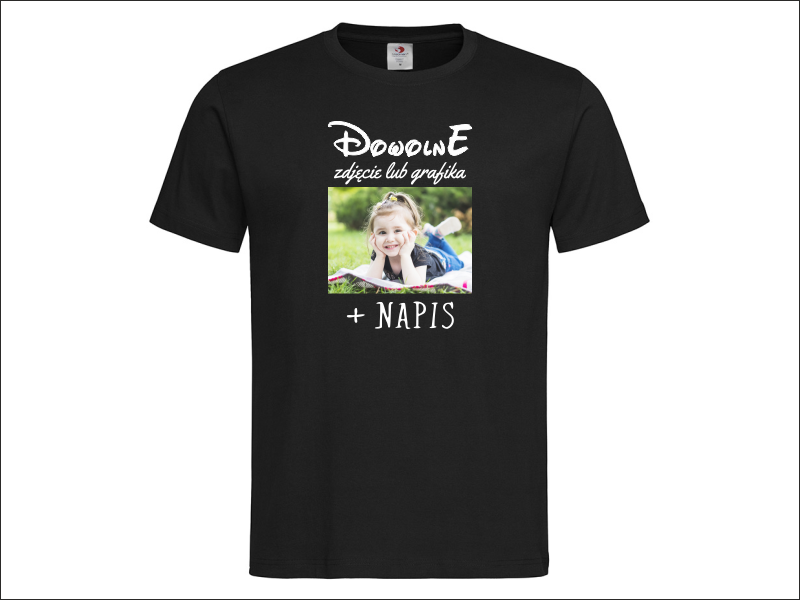 Na koszulce można wykonać nadruk dowolnej grafiki czy zdjęcia oraz napisu.
