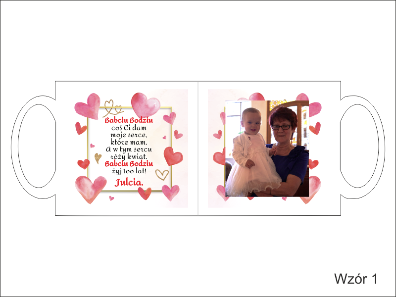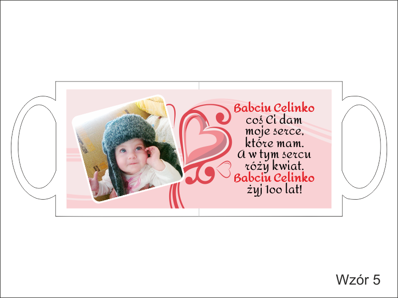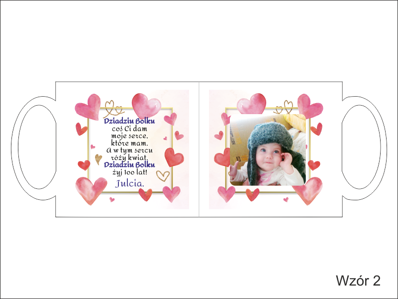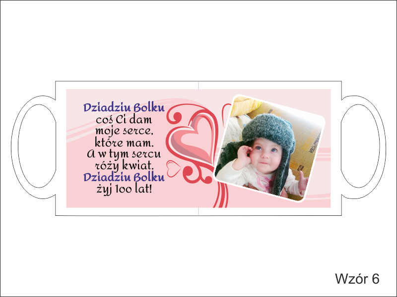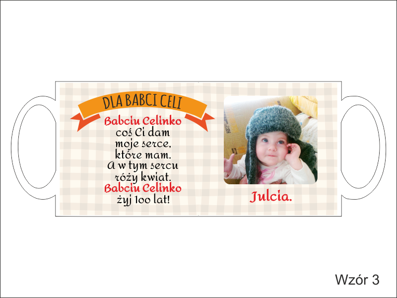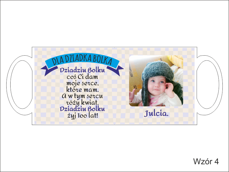 W projekcie kubeczka wykorzystano zdjęcie wnuczki / wnuka oraz życzenia w formie wierszyka.