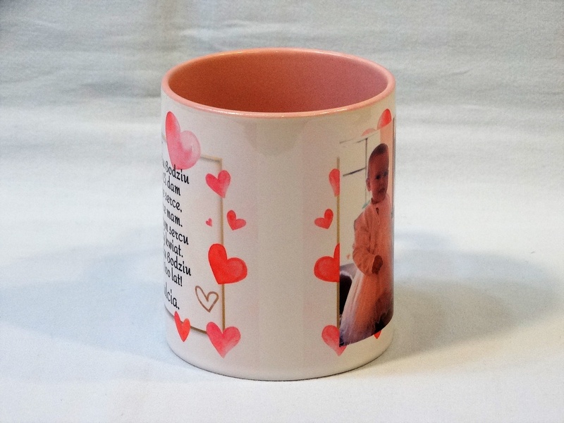 Na kubku można wykonać pełnokolorowy nadruk dedykacji, grafik lub zdjęcia.
