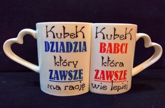 W projekcie kubeczka wykorzystano motyw Babci, która wie lepiej i Dziadka, który wie wszystko.