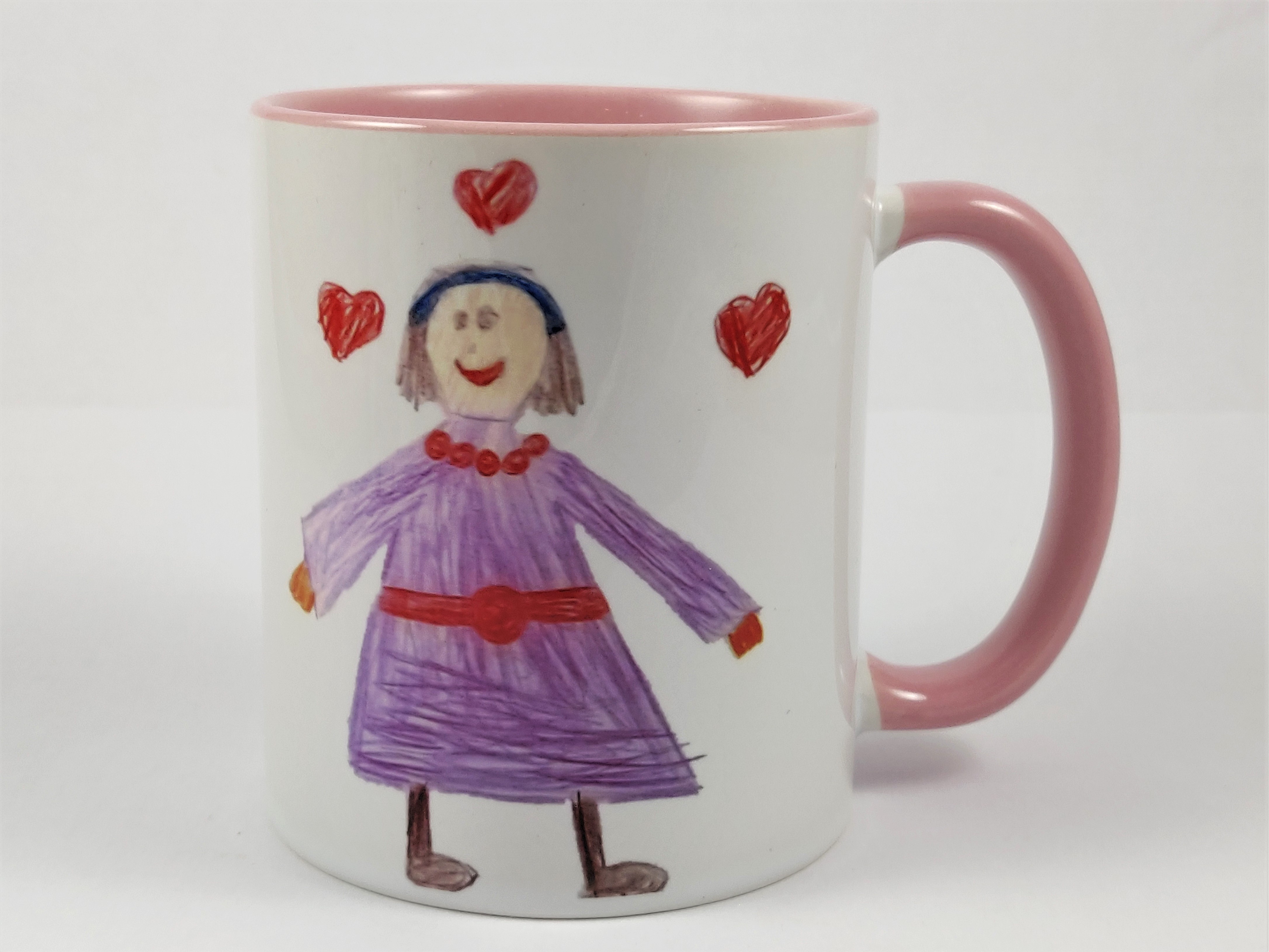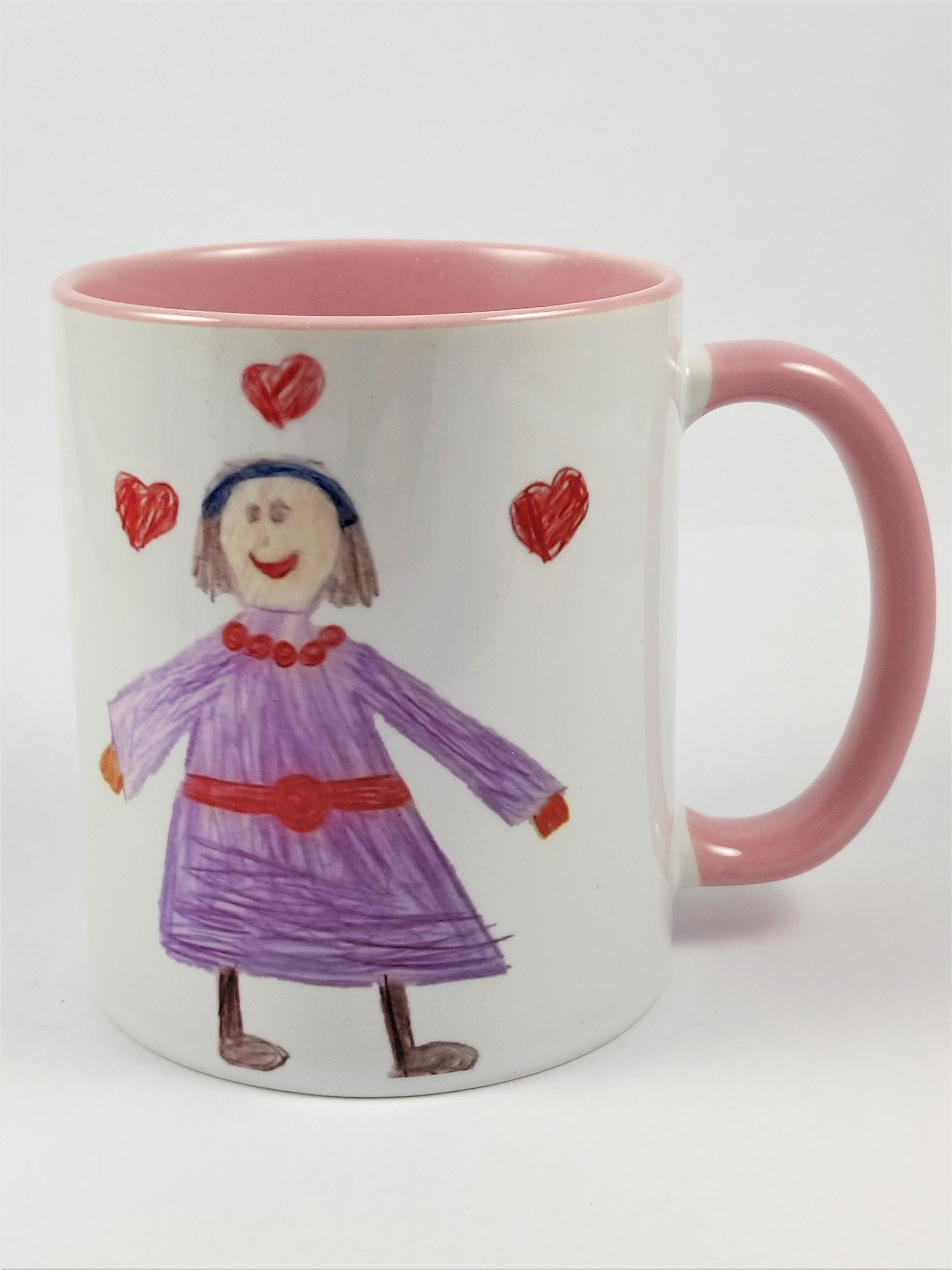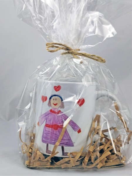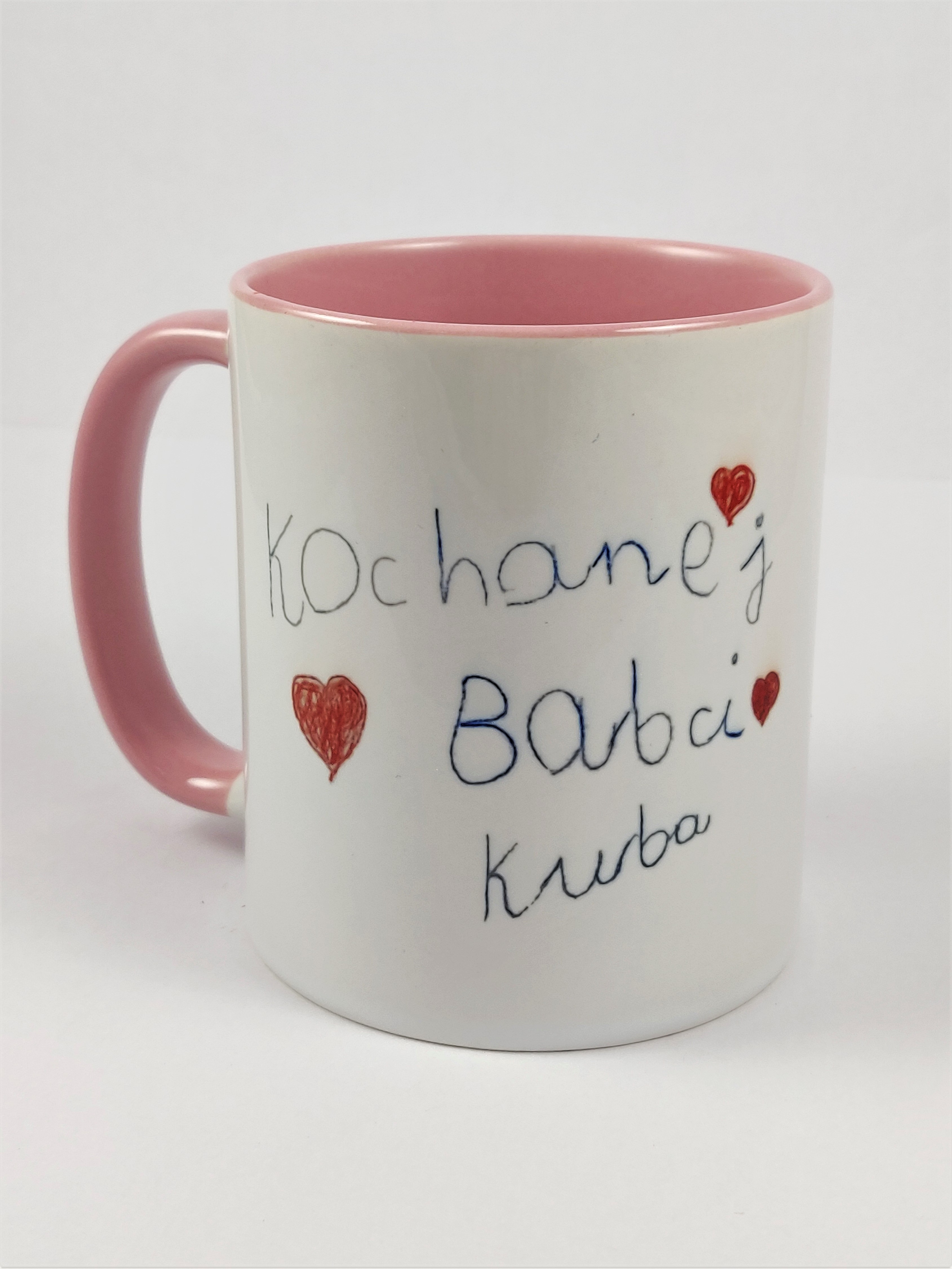 Wyjątkowy, niepowtarzalny upominek dla Babci lub Dziadka w postaci kubka z nadrukiem indywidualnego, odręcznego rysunku dziecka.