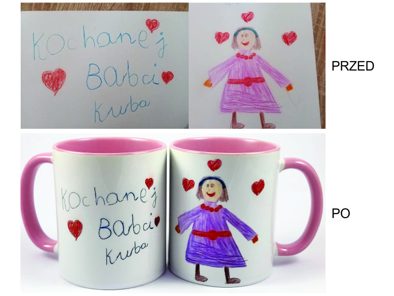 Żeby wykonać taki kubeczek należy przesłać (załączyć) plik ze skanem lub zdjęciem rysunku i odręcznych życzeń wykonanych z myślą o babci lub dziadku.