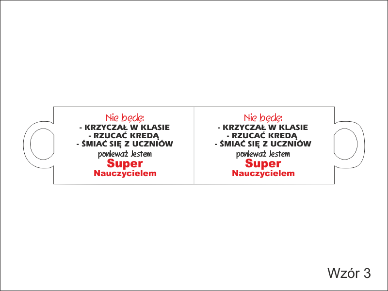 Nadruk dedykacji na filiżance jest dowolny i można wykorzystać jeden z wzorów lub wykonać wg indywidualnych ustaleń.