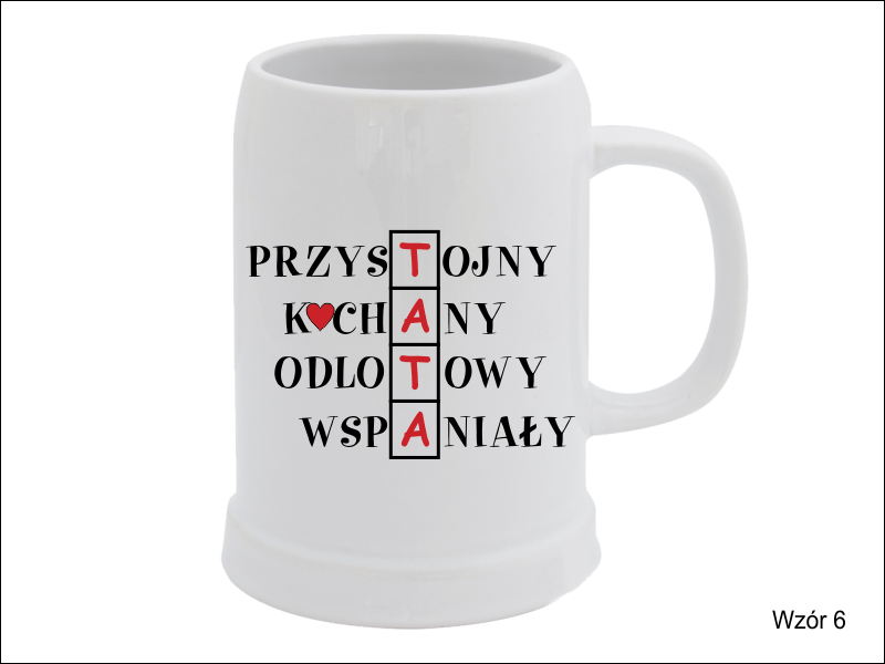 Nadruk dedykacji na kuflu jest dowolny. Można wykorzystać jeden z wzorów lub wykonać wg indywidualnych ustaleń.