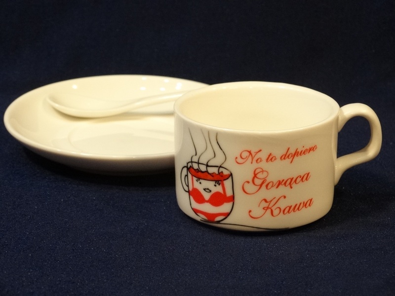 Powierzchnia filiżanki pokryta jest specjalną, przyjmującą nadruk powłoką, dodatkowo utwardzoną, co zapewnia odporność na mycie w zmywarce.