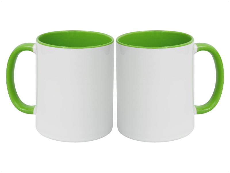 Kubek biały z zielonym uszkiem i wnętrzem z nadrukiem o pojemności 330ml i wysokości 9cm, średnica 8cm, wykonany jest z najwyższej jakości ceramiki.