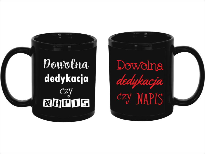 Kubek czarny z białym okienkiem na nadruk pojemności 330ml i wysokości 9cm, średnica 8cm, wykonany jest z najwyższej jakości ceramiki.