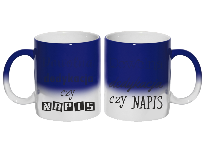 Kubek magiczny granatowy z nadrukiem o pojemności 330ml i wysokości 9cm, średnica 8cm, wykonany jest z najwyższej jakości ceramiki.