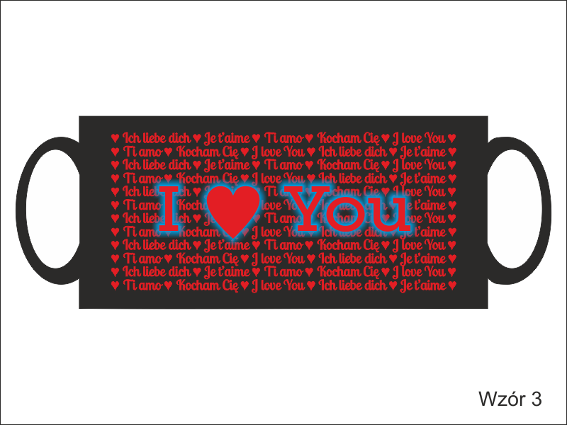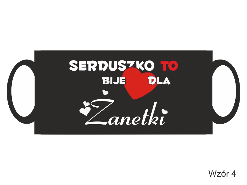 Nadruk dedykacji na kubku jest dowolny i można wykorzystać jeden z wzorów lub wykonać wg indywidualnych ustaleń.