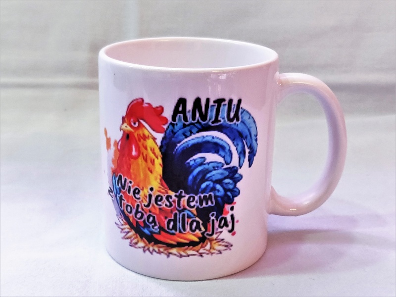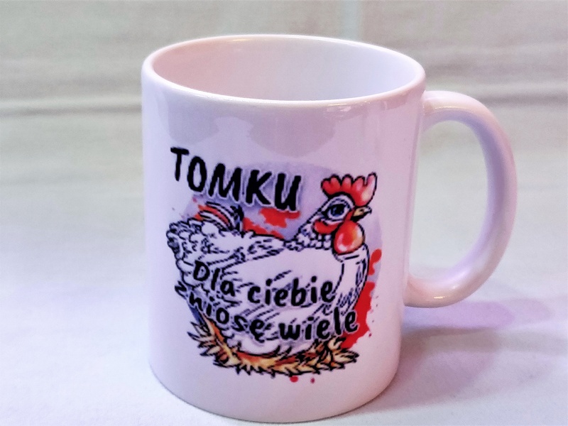 Na kubku można wykonać pełnokolorowy nadruk dedykacji, grafik lub zdjęcia.