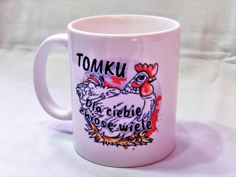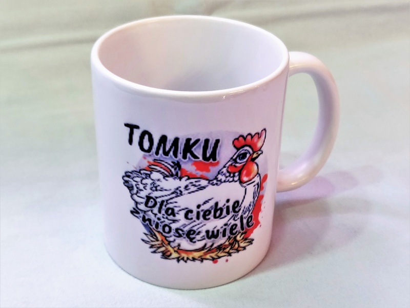 W projekcie kubeczka wykorzystano motyw Kury i Koguta.