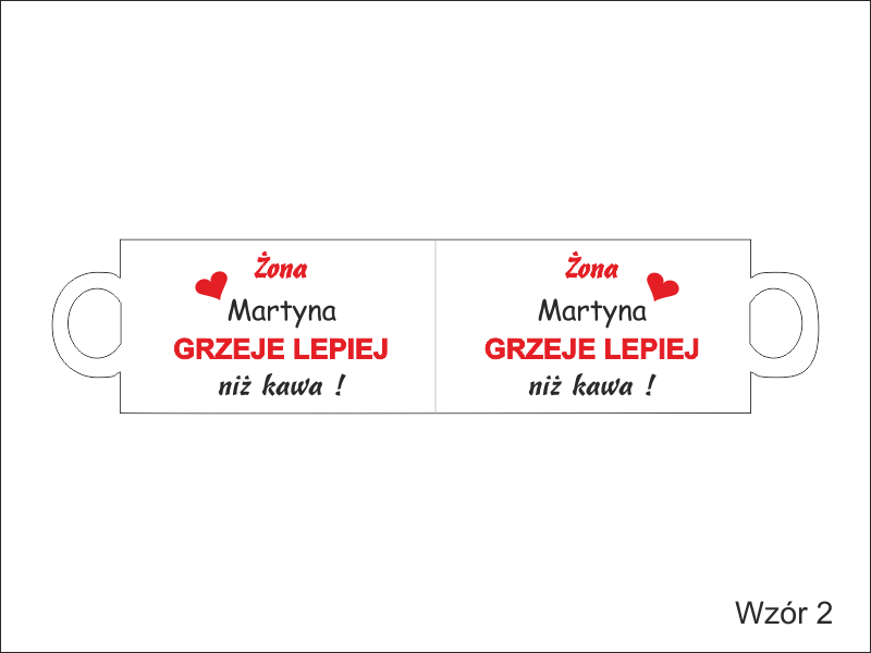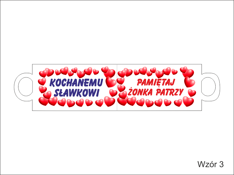 Nadruk dedykacji na filiżance jest dowolny i można wykorzystać jeden z wzorów lub wykonać wg indywidualnych ustaleń.
