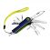 Złożony scyzoryk ma wielkość 9 cm. Scyzoryk ma 11 funkcji i dodatkową smycz.
