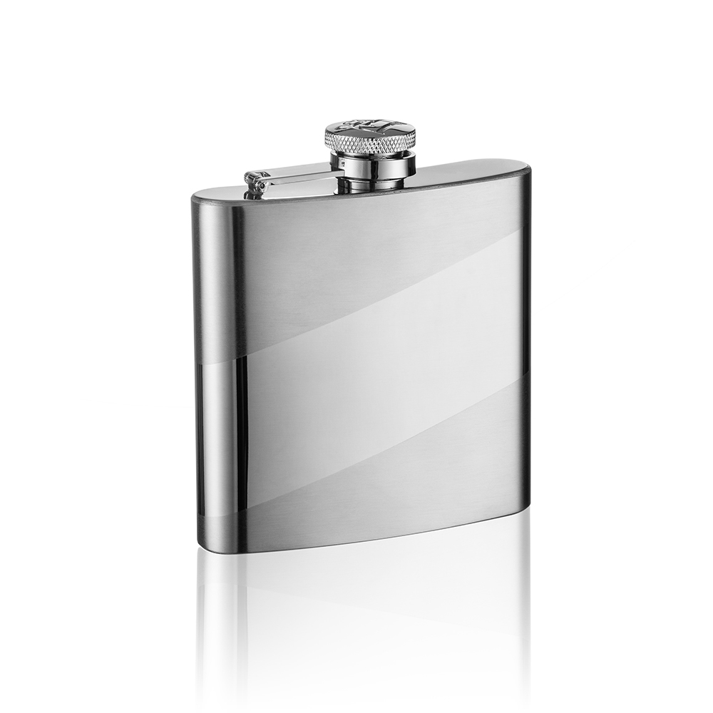 Piersiówka stalowa o pojemności 180 ml, bez rantu z ozdobnym deseniem, z możliwością graweru dedykacji.