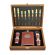 Całość umieszczona jest w drewnianym pudełku - szachownicy.
