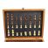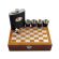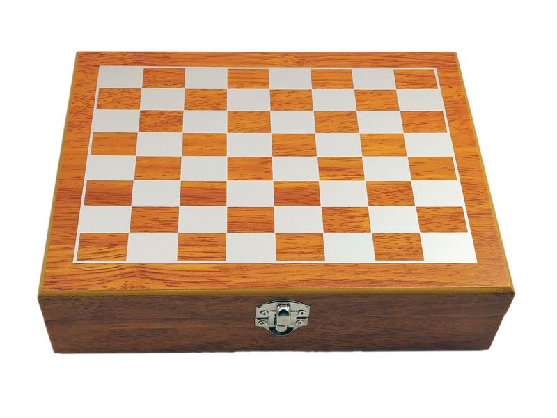 Całość umieszczona jest w drewnianym pudełku - szachownicy.