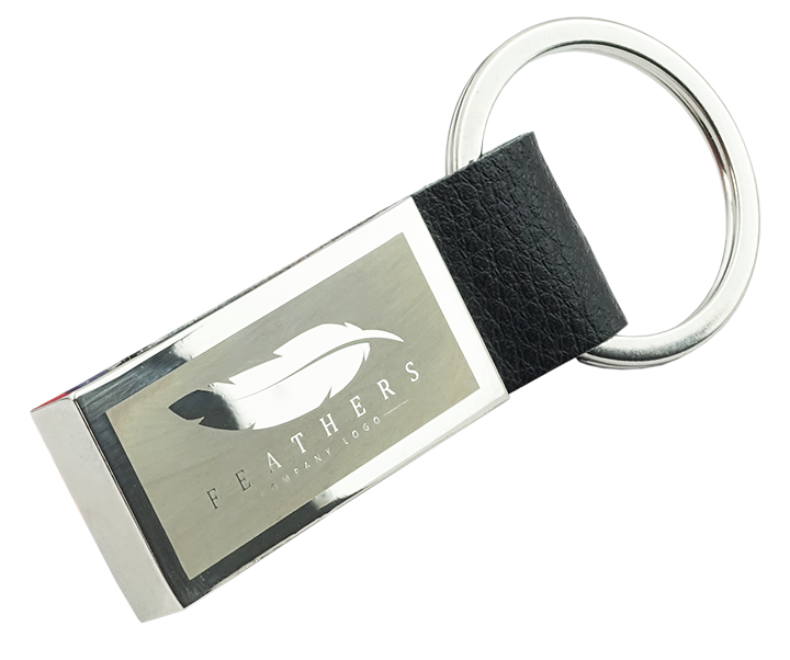 Metalowo-skórzany brelok do kluczy w kształcie prostokątnym z mocnym kółkiem.