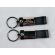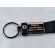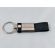 Brelok składa się ze skórzanego, czarnego paska otoczonego metalową obejmą z zaczepionym kółkiem.