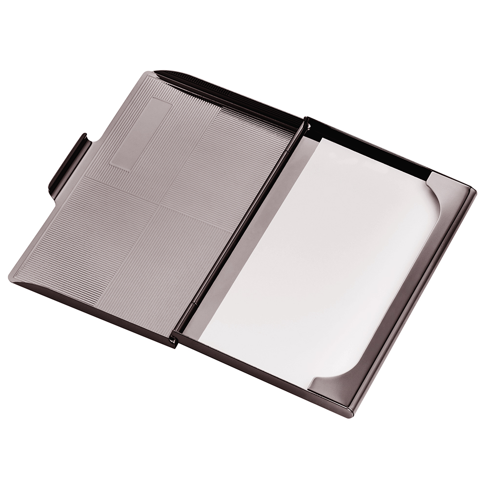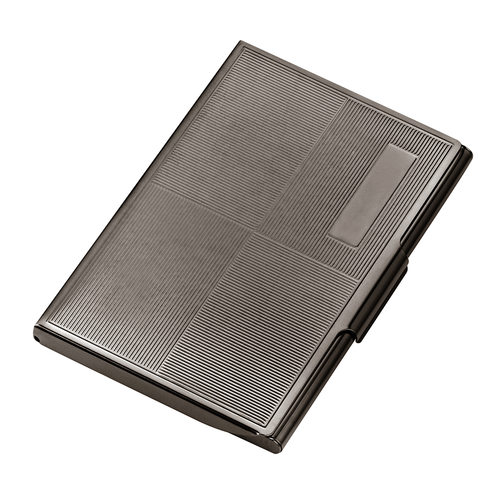 Elegancki metalowy wizytownik marki Dan Barmore z niewielkim miejscem pod grawer.