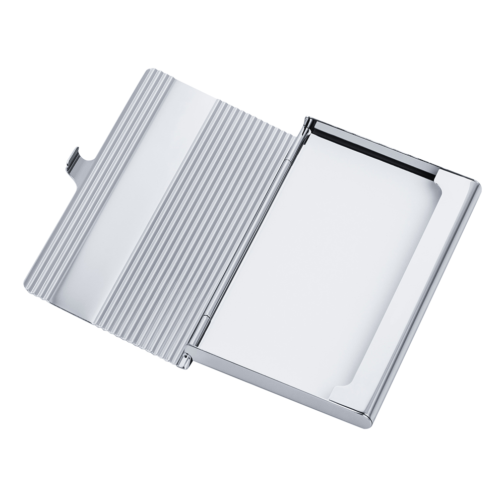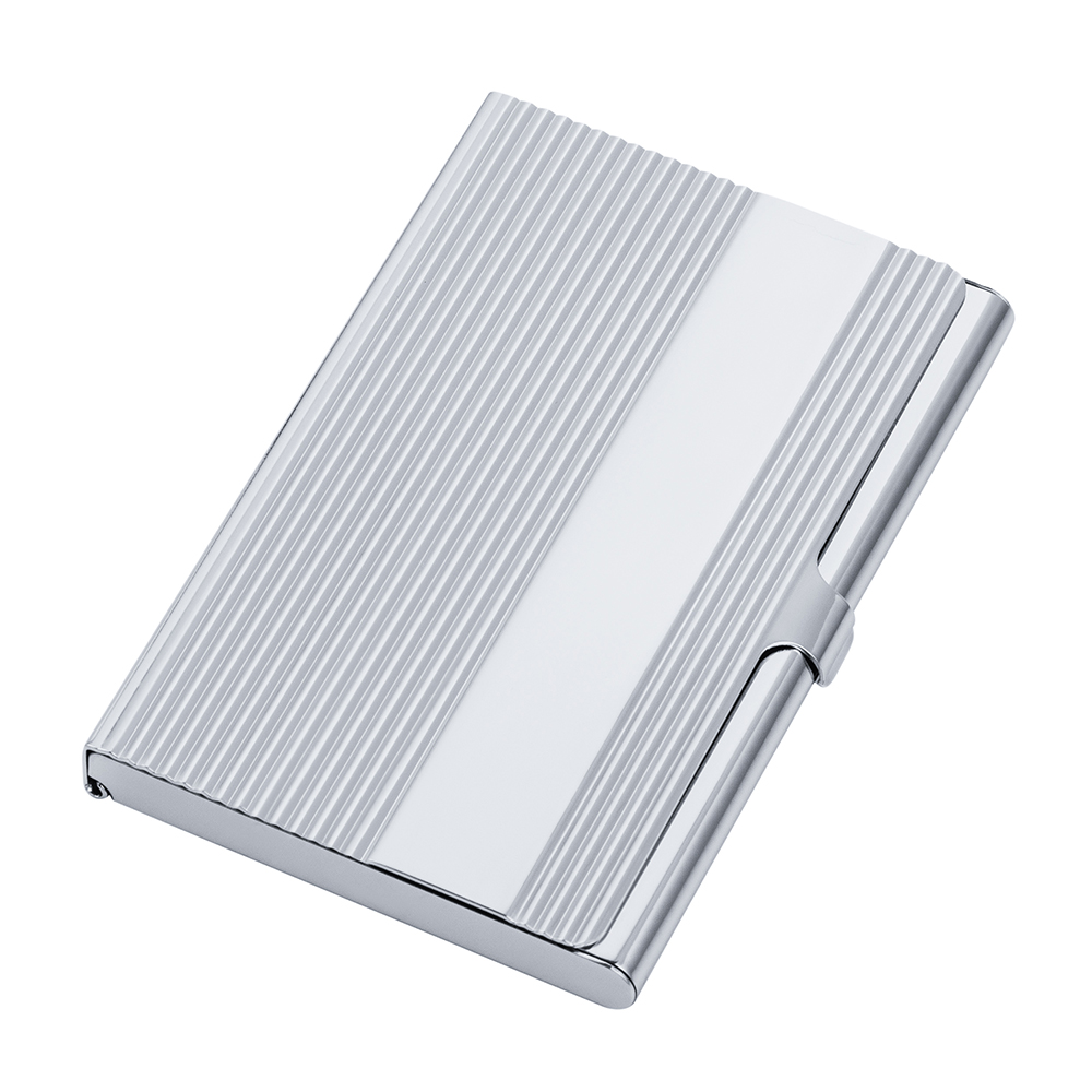 Elegancki metalowy wizytownik marki Dan Barmore w wytłaczane paski z miejscem pod grawer.