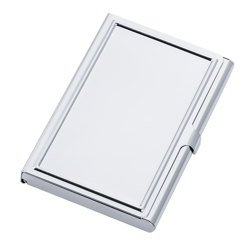 Elegancki metalowy wizytownik marki Dan Barmore z wytłaczaną dużą ramką.