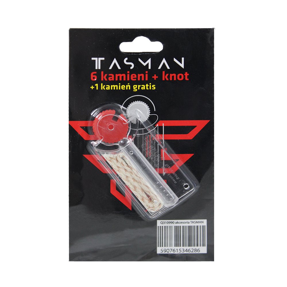 Kamienie i knot do zapalniczek Tasman pakowane w plastikowym dyspenserze