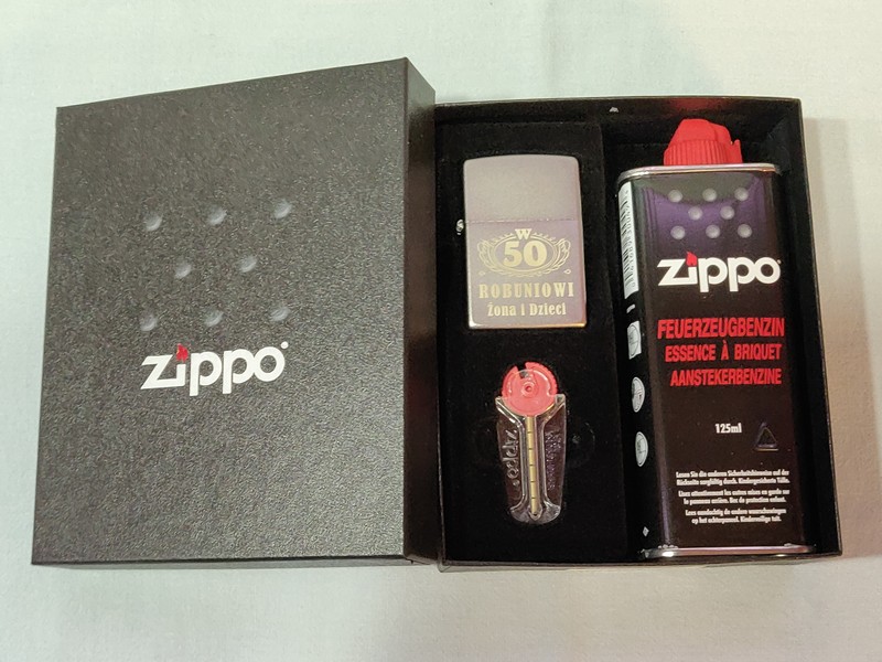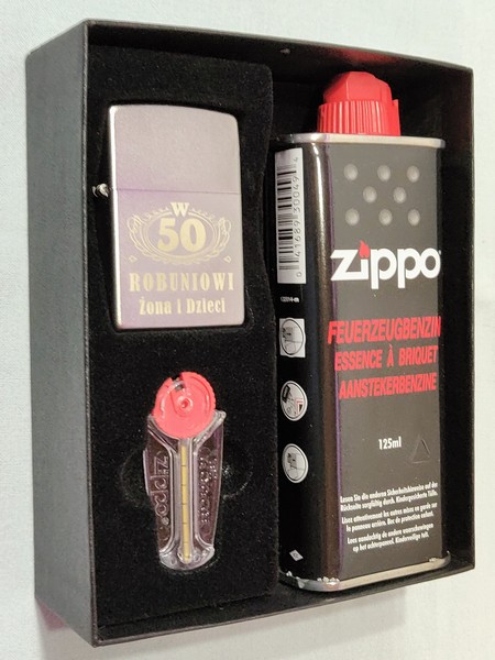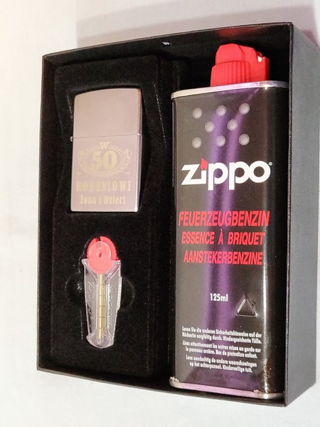 Pudełko upominkowe ZIPPO, z akcesoriami (z benzyną i kamieniami).